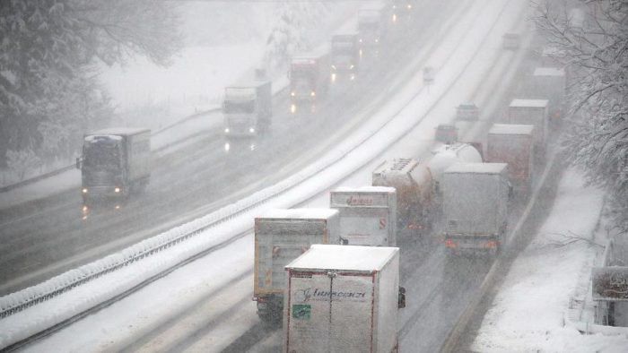 حاصرت الثلوج الكثيفة آلاف السيارات على طريق سريع شمال إيطاليا .
