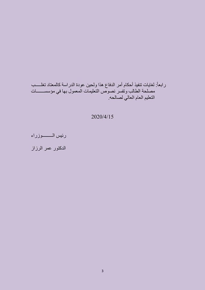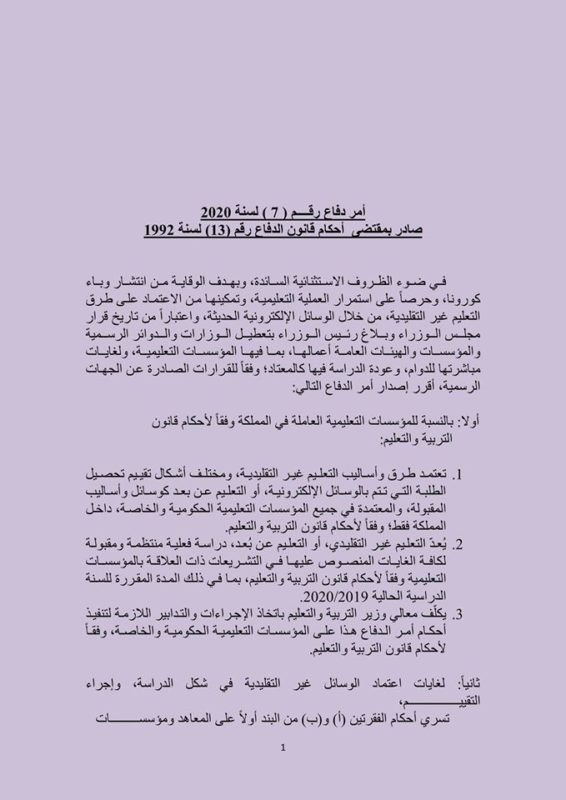 تعرف على النص الكامل لأمر الدفاع 7 Posted on April 15, 2020April 15, 2020 by jameeleh Related Post والدة الدكتور محمد بن طريف في ذمة الله شقيقة الأستاذ الدكتور خالد الطراونة في ذمة الله “عمان العربية” والملحقية اليمنية تبحثان التعاون المشترك تشكيلات أكاديمية في “عمان العربية” مشروع تخرج لطالبة هندسة العمارة في “عمان العربية”