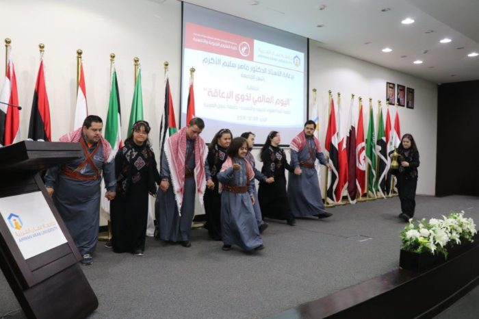عمان – استضافت جامعة عمان العربية جمعية متخصصة في متلازمة داون، خلال فعاليات الإحتفال باليوم العالمي للأشخاص ذوي الاعاقة.