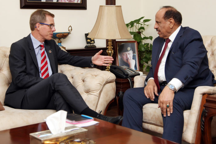 بحث وزير الداخلية سلامة حماد لدى لقائه في مكتبه اليوم الثلاثاء، المنسق المقيم للأمم المتحدة ومنسق الشؤون الانسانية اندرس بيدرسن، سبل تدعيم آفاق التعاون الثنائي بين الجانبين في عدة مجالات ابرزها دعم المنظمة للأردن في المشاريع التنموية التي ينفذها وكيفية التعامل مع الكوارث الطبيعية والجهود الاردنية المتعلقة بحقوق الانسان.